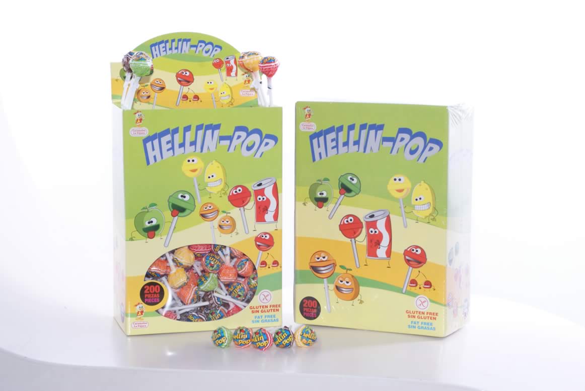 Caramelo con palo solido 8 grs. Sabores surtidos. Estuche 200 uds. Cajas 6 Estuches.